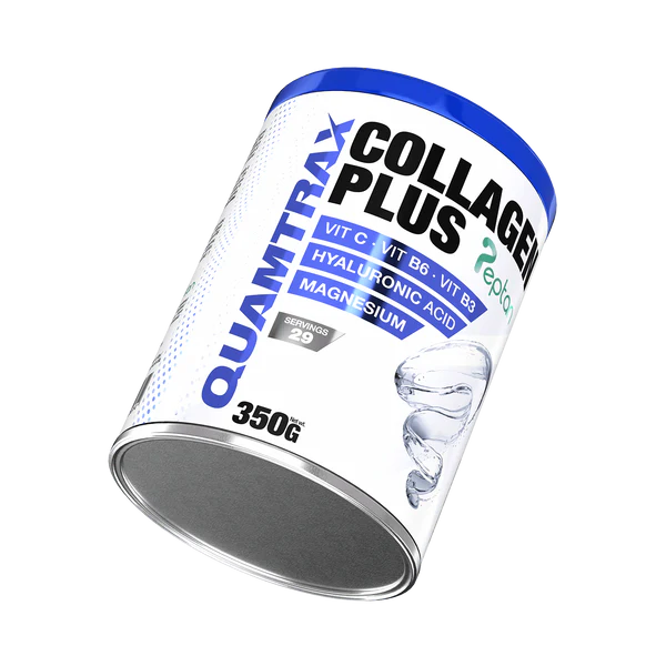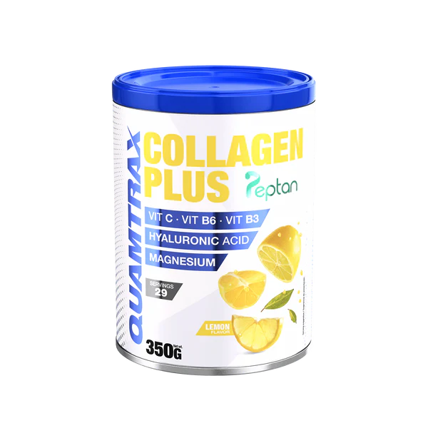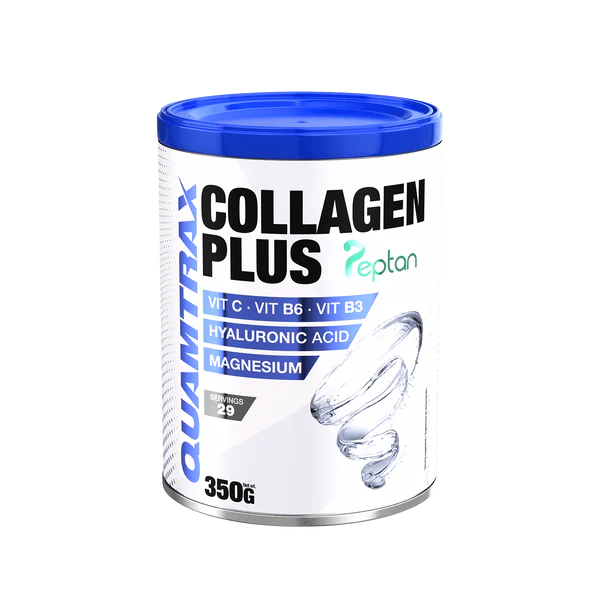 Collagen Plus de Quamtrax contiene colágeno Peptan® 100% hidrolizado de procedencia bovina, reconocido por su alta calidad y pureza. Gracias a esta materia prima patentada, el colágeno hidrolizado Peptan® ofrece un soporte excepcional para la salud articular, muscular y de la piel. Su fórmula también incluye ácido hialurónico para reforzar la acción del colágeno, magnesio para mejorar la función muscular y un complejo vitamínico compuesto por vitamina C, B3 y B6 para mejorar la síntesis de colágeno y favorecer el bienestar general.